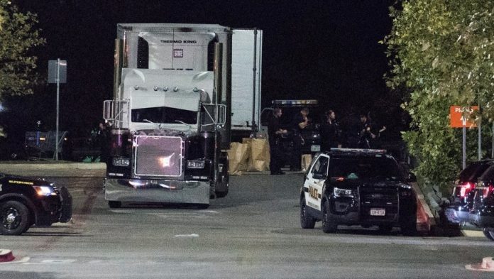 “El trabajador volvió con el agua, llamó a la policía y cuando llegamos encontramos ocho personas muertas en la parte trasera del trailer”, explicó McManus, quien detalló que “había al menos 38 personas dentro del vehículo”.