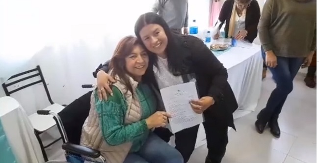 Norma Macías,encargada del Área de Discapacidad y Carlos Nuñez Sub Secretario de Desarrollo Social, participó de la entrega.