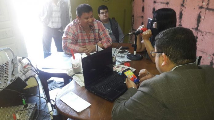 Minutos antes se había presentado intempestivamente en los estudios de Radio FM Energía, en donde la directora y propietaria, Silvia Bazán, realizaba una nota a su par de Diario Cuarto Poder, Manuel Ernesto Rivas, quien se encontraba difundiendo la publicación tras su fuerte desembarco en el sur provincial. Lejos de intimidarse, Rivas -de amplia trayectoria en medios escritos- no tuvo inconveniente en que se sumara a la mesa, en donde el edil aguilarense señaló que no tiene nada que ver con la ocupación del predio en cuestión, aunque defendió la propiedad de uno de los acusados, Sergio Silva, de quien se definió no como amigo sino como un verdadero hermano.