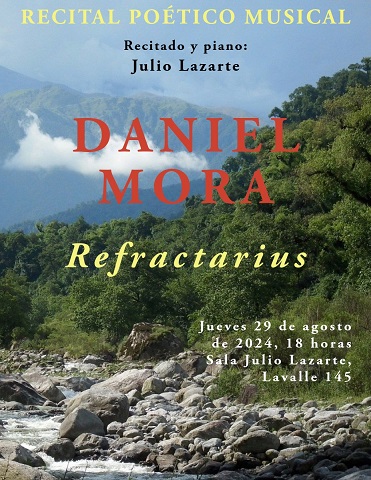 - Jueves 29 de agosto, a las 18, “Refractarius”, de Daniel Mora. Recitado y piano: Julio Lazarte.