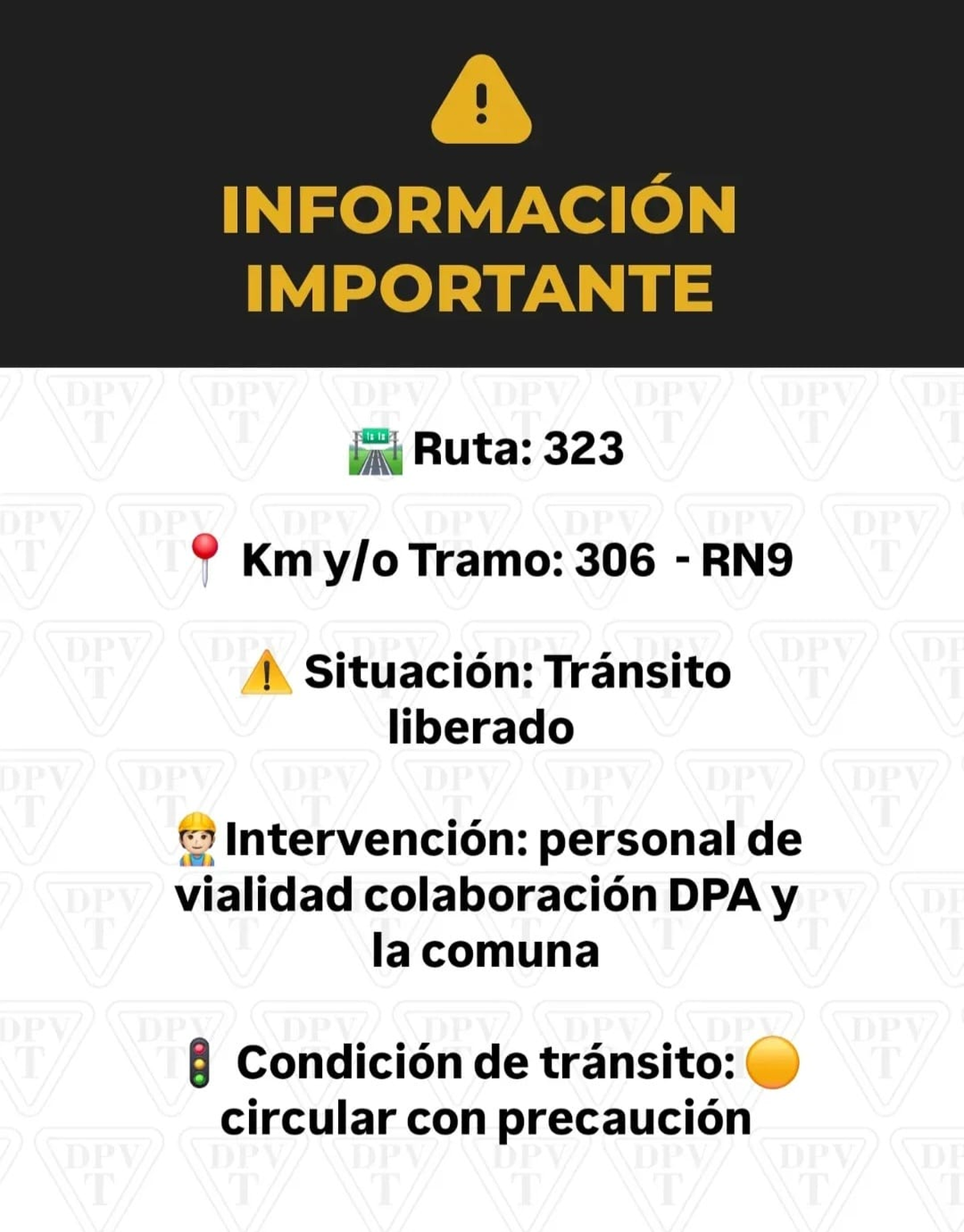 Ruta 323: “Ayer por la tarde fue reconstituida en su totalidad, en la zona de Santa Rosa de Leales”.