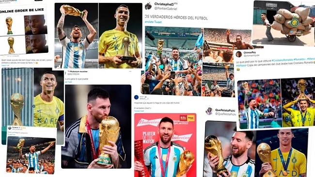La similitud del trofeo levantado por el Bicho con la Copa del Mundo fue un detalle que no pasó desapercibido frente a sus detractores. Los usuarios emplearon todo su repertorio de ácidos comentarios para comparar las copas levantadas por el futbolista de 38 años y Lionel Messi, quien se consagró en el Mundial de Qatar con la selección argentina en diciembre pasado.