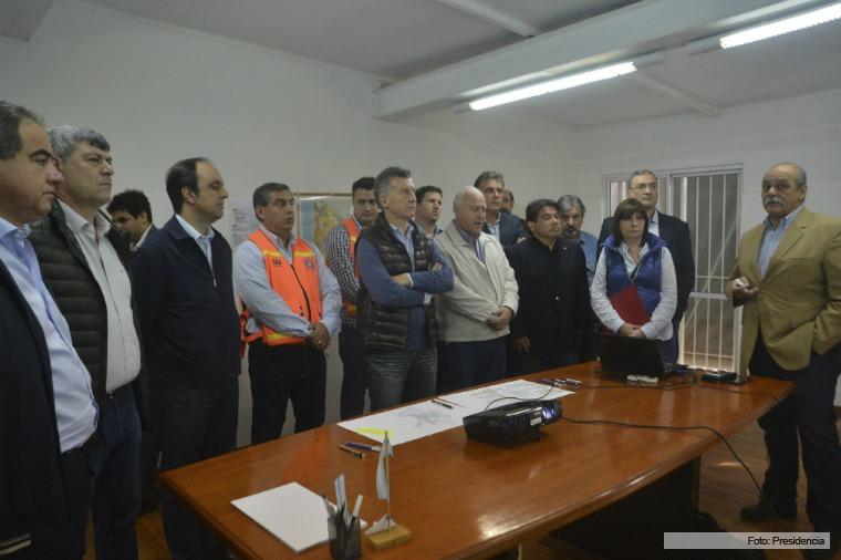 El presidente encabezó una reunión del Sistema Federal de Emergencias (Sifem) del que participaron también el gobernador santafesino, Miguel Lifschitz; el intendente local, Luis Castellano; y el de la ciudad de Santa Fe, José Corral.