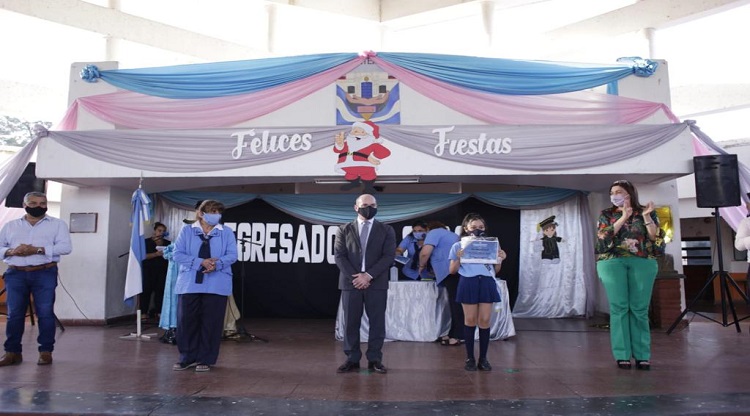 A su vez, el ministro agradeció “a la docencia, porque sin ellos no hubieran podido. También a las familias, todos hemos tenido que aprender a desarrollar una tarea que no es habitual, pero la hicimos y eso permite que hoy haya una promoción 2020. Por último, agradezco a la intendenta y al equipo de gobierno de Alberdi a llevar a cabo todos los actos, la solidaridad y el trabajo en conjunto es también una enseñanza que hemos dejado”.