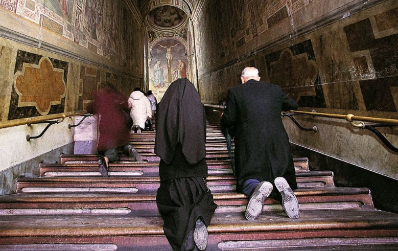 No hay peregrino católico que no pase por la “Scala Santa” en su periplo a Roma y muchos cada día cumplen con la tradición de subirla de rodillas para obtener a cambio la indulgencia de sus pecados.