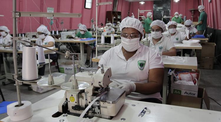 El espacio se encuentra en la etapa de producción de 100.000 barbijos. Además, se producen otros elementos utilizados hoy en hospitales, el aeropuerto y la terminal, como camisolines, cofias y botas.