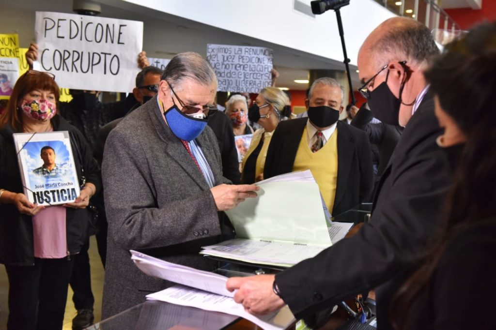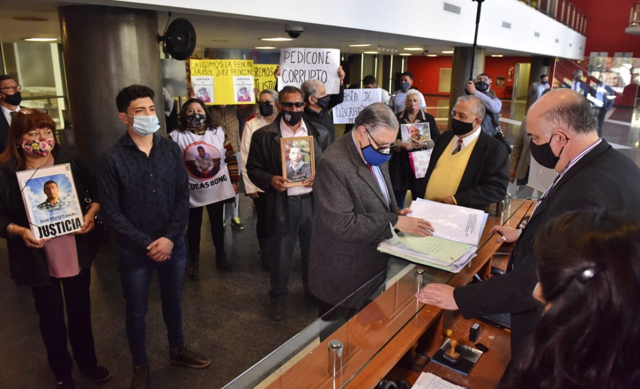 Esta mañana, el Dr. Juan Eduardo Rojas, acompañado de familiares y abogados de familiares víctimas de delitos, se presentaron en la H. Legislatura para ratificar y ampliar la denuncia contra el Juez del Tribunal de Impugnación, Enrique Pedicone. Además, se presentaron nuevas pruebas en las distintas presentaciones.