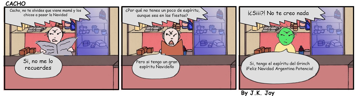 Actualidad ¡Feliz Navidad Argentina potencia! 24 diciembre, 2024 Compartir en Facebook Compartir en Twitter 🔊 Escuchar la entrada El personaje principal de la tira cómica de Diario Cuarto Poder , Cacho, Creado por J.K. Joy , le dice a su esposa que él si tiene espíritu Navideño Comments Comentarios