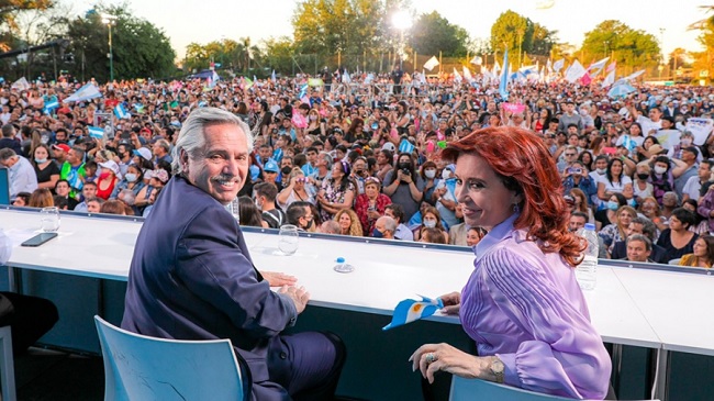 El presidente Alberto Fernández aseguró hoy que la Argentina “está avanzando con producción y trabajo”, al encabezar junto a la vicepresidenta Cristina Fernández de Kirchner el acto de cierre de campaña del Frente de Todos (FdT) en la ciudad bonaerense de Merlo para las elecciones legislativas del domingo próximo.