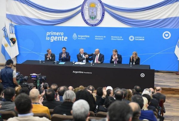 Y destacó que ese desarrollo científico se concretó a partir de una investigación que se hizo en Tucumán: “nosotros tenemos que ayudarlos a que desarrollen esa ciencia y tecnología en el interior de la patria. Eso repercute en favor de toda la Argentina. Voy a seguir todos los días aportando a la educación pública” y destacó que un ejemplo es la obra desarrollada en la Facultad de Bioquímica, Química y Farmacia de la UNT en beneficio de 3000 alumnos.