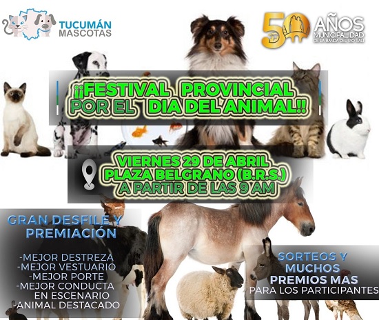 El festival se realizará este viernes 29 de abril a partir de las 9:00 horas en Plaza Belgrano (B.R.S.) para festejar junto a tu mascota, su día especial.