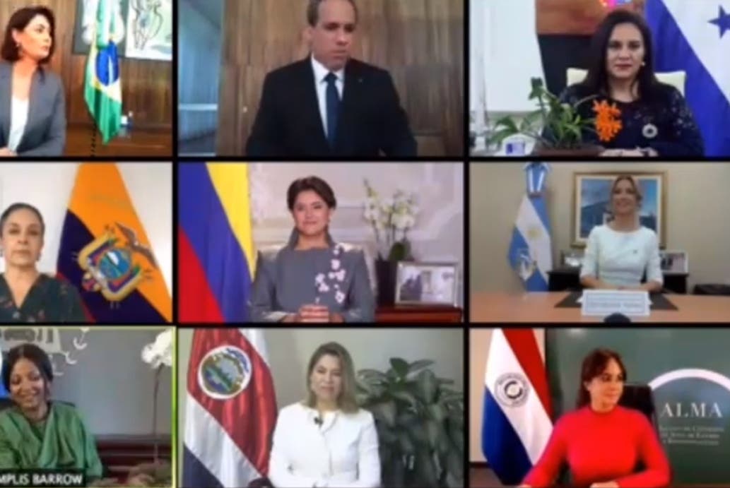 En la videoconferencia estuvieron presentes la argentina Fabiola Yañez, la beliceña Kim Simplis Barrow, la brasileña Michelle Bolsonaro, la colombiana María Juliana Ruiz, la costarricense Claudia Dobles, la ecuatoriana Rocío González, la hondureña Ana García, la panameña Yazmín Colón y la paraguaya Silvana López-Moreira.