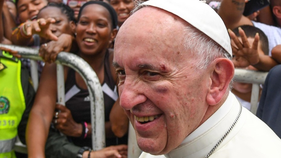 Francisco sufrió este mediodía una cortadura en la ceja y una inflamación en el pómulo izquierdo después de una mala frenada del Papamóvil que lo transportaba por un barrio de la caribeña ciudad de Cartagena.
