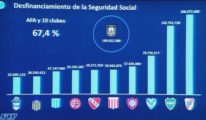 “Esto no es sólo del fútbol. Se debe a un arrastre que ha tenido involucrado también otros sectores”, comentó el titular. Y agregó: “El número final que surgió tiene que ver con la cantidad de empleados que tiene cada uno de los clubes, pero entre los principales, además de la AFA, está River con 166 millones y Boca con 143 millones”. Sin embargo, el hecho de exponer los números en una conferencia, según Abad, sirven como un ultimatum ya que entre diciembre de 2015 y la actualidad existieron intimaciones de pago a los clubes que rondan los 395 millones de pesos, fiscalizaciones para tener presencia en AFA y, en los casos más extremos, denuncias penales.