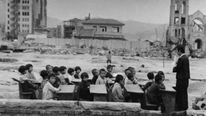 Por dos años Hiroshima estuvo en ruinas, sin escuelas, pero durante ese tiempo sus alumnos nunca dejaron de asistir a clases y los maestros nunca dejaron de estar al frente de ellos.