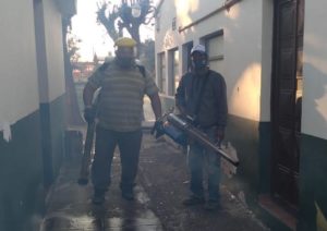Las acciones se llevan adelante a través de la Dirección de Comercio y Saneamiento Ambiental, que realizó un intenso operativo de fumigación y desinfección en diferentes puntos del mencionado municipio.