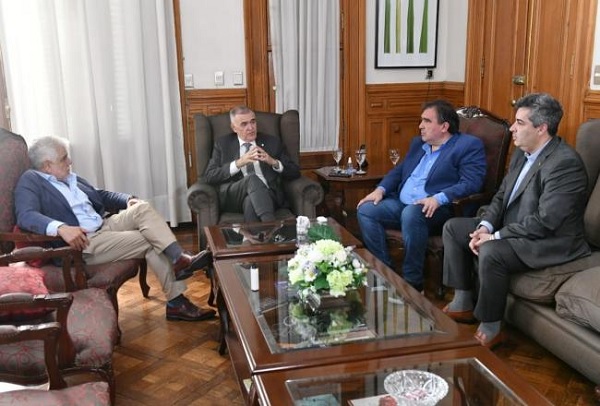 El gobernador, Osvaldo Jaldo, recibió esta mañana en su despacho de Casa de Gobierno al interventor del Instituto Provincial de Lucha contra el Alcoholismo (IPLA), Dante Loza; al fiscal de Estado Adjunto, Raúl Ferrazzano y a Javier Morof, secretario de Grandes Comunas del Ministerio del Interior, quienes expresaron el apoyo a las decisiones tomadas por el Primer Mandatario para proteger a la industria local del azúcar y el citrus, en el tratamiento de la Ley de “Bases” en la Cámara de Diputados.