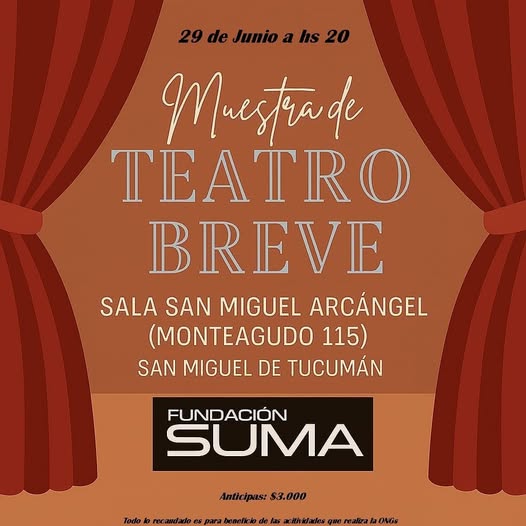 Letras de Fuego / Noticias. Con textos del libro “Un amigo que espera”, de María Argelia Aydar, Fundación SUMA realizará la presentación de “Muestra de Teatro Breve” en el Anfiteatro San Miguel Arcángel, de la Capital tucumana.