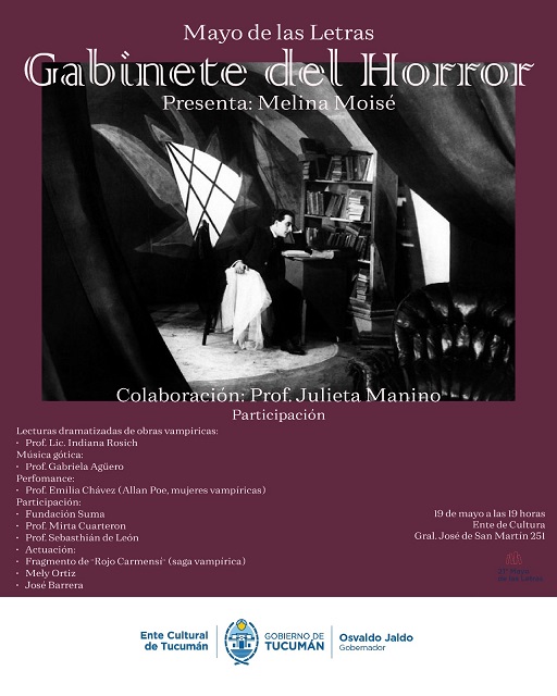 Hoy, lunes 19 de mayo, a las 19, en el marco del Mayo de las Letras se desarrollará la propuesta “Gabinete del horror”, con la coordinación de la escritora Melina Moisé y la colaboración de Julieta Manino.