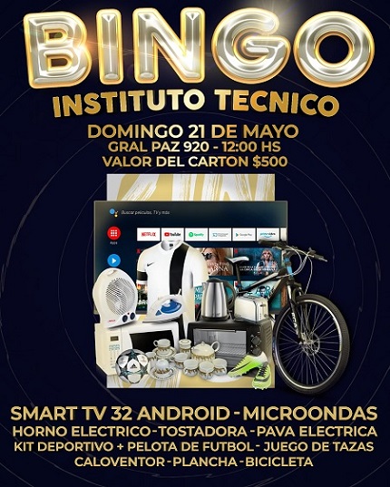En el Bingo Familiar se van a sortear 10 premios, incluída una televisión, microondas, horno eléctrico, bicicleta, etc…