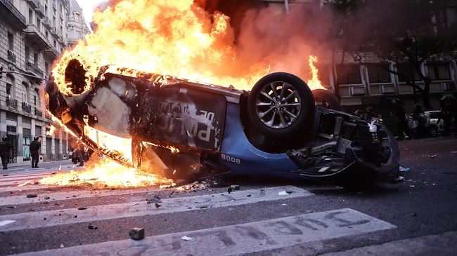 Hay 114 detenidos y un policía herido de bala. La habitual movilización de los miércoles fue cooptada por barras bravas y piqueteros de Izquierda. El Gobierno calificó la protesta como un intento de desestabilización.