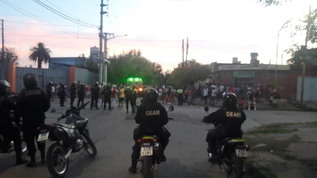 Ladrillazos y piedras; corridas y golpes. Gases lacrimógenos. Personas golpeadas y vehículos rotos en los alrededores del estadio.