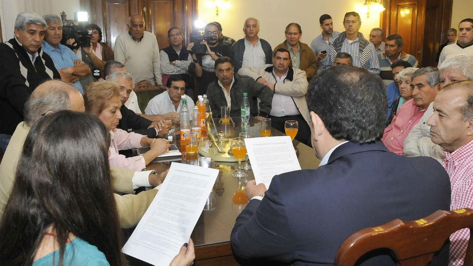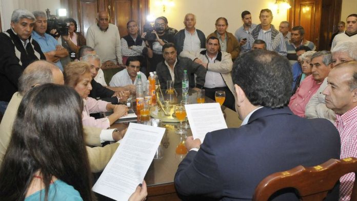 Referentes de los sindicatos presentaron ayer en Casa de Gobierno un pedido de audiencia con los ministros Regino Amado (Gobierno) y Eduardo Garvich (Economía), para dialogar sobre el otorgamiento de un pago por única vez a fin de año, entre otros puntos.