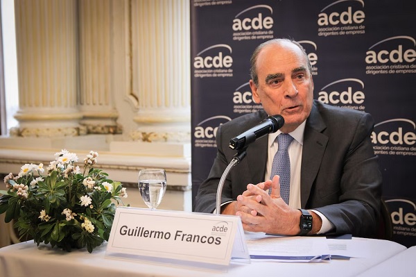 Francos habló ante la Asociación Cristiana de Dirigentes de Empresa (ACDE), que preside Silvia Bulla, en un encuentro convocado en el Centro Naval, en el centro porteño. Allí, el funcionario también se mostró confiado en un triunfo del oficialismo en las próximas elecciones nacionales, incluso en La Matanza, el bastión del peronismo. La declaración ocurrió horas después del anuncio que Cristina Kirchner de que será candidata por la Tercera Sección Electoral, pero para los comicios provinciales de septiembre.