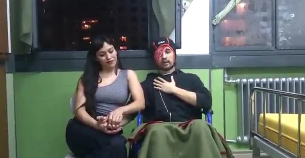 “Mi nombre, como sabrán, es Santiago Siciliano, me encuentro con mi novia Rocío Herrera, quien me cuida desde el momento uno que llegué a terapia”, fueron las primeras palabras que brindó Siciliano, sentado en una silla, con un parche en su ojo derecho y con un casco protector sobre su cabeza.