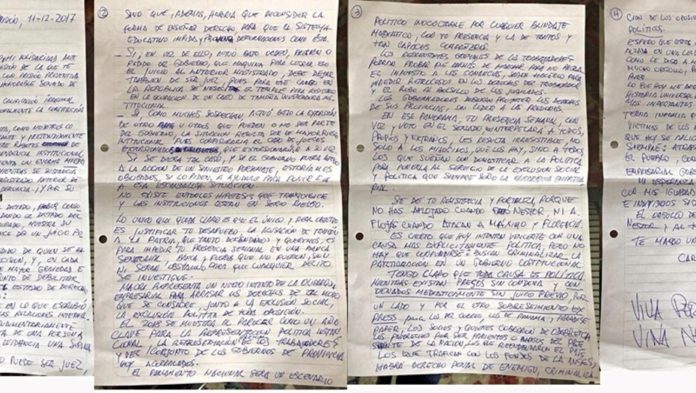 “Tengo claro que toda causa es política”, dijo Zannini en una carta que publicó Cristina Fernández de Kirchner en su cuenta de Twitter, donde cuenta que Franco y Carlitos Zannini, los hijos del detenido, le entregaron ayer, en mano, las cuatro hojas del mensaje, escrito en el penal de Ezeiza, donde el ex funcionario permanece detenido desde el jueves último.
