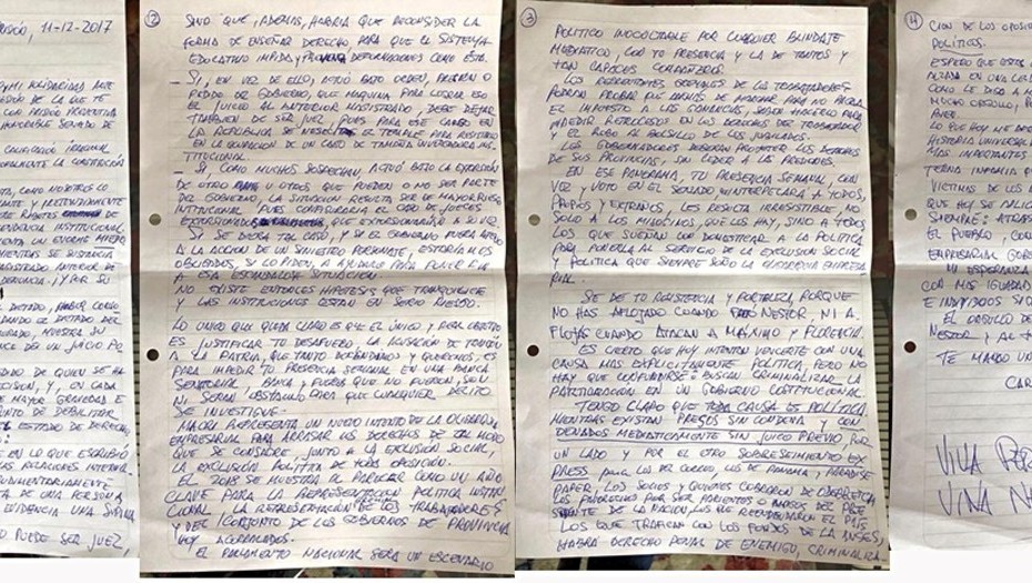 Fue quien le llevó a Cristina la carta que su padre escribió de puño y letra para la ex Presidenta.