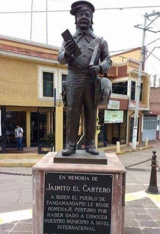 Justamente en uno de los puntos principales de esa ciudad, la de Tamangandapio, en 2012, se erigió una estatua en su honor en la que dice: “En memoria de Jaimito El Cartero a quien el pueblo de Tamangandapio le rinde homenaje póstumo por haber dado a conocer nuestro municipio a nivel internacional”.