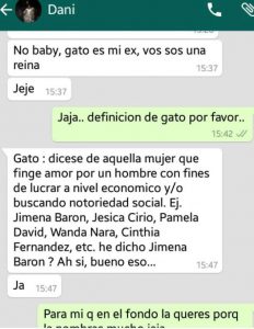 En un mensaje de chat, el jugador trata de “gato” a su mujer Jimena Baron ¡Se pudrió todo!