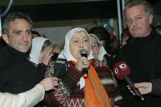 Bonafini habló a los presentes que se encontraban en el lugar portando carteles y banderas. “Ayer fue un día muy importante para todos, ya que la policía montó un operativo con carros y muchos efectivos, daba asco”, les dijo.