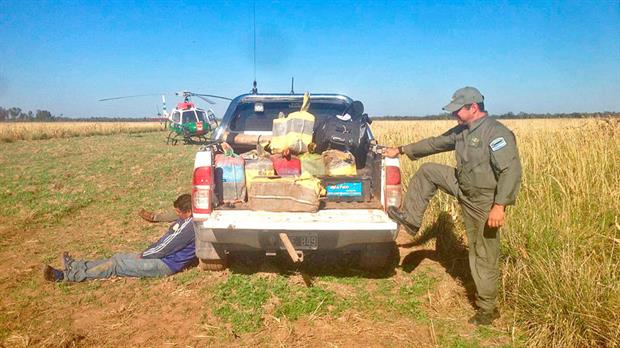 En forma paralela, los gendarmes cercaron el lugar donde habían sido arrojado los estupefacientes, en el que debían recogerlo personas que estaban apostadas en tierra y que forman parte de otro eslabón de la cadena del tráfico de drogas.