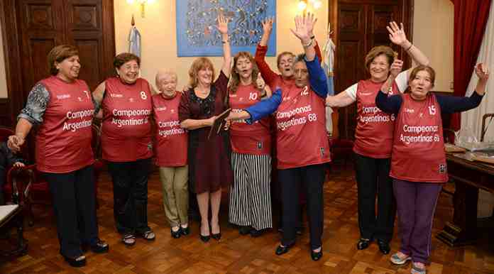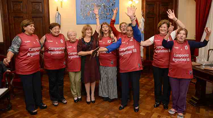 La secretaria General de la Gobernación, Silvia Pérez recibió este jueves en su despacho al equipo femenino de básquet, que en 1968 fueron campeonas argentinas.