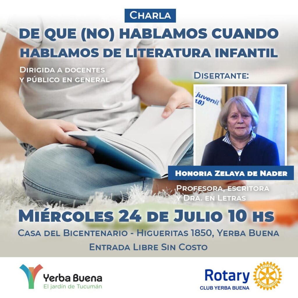 La escritora y referente de literaria de niños y jóvenes, la Doctora en Letras Honoria Zelaya de Nader, brindará la charla “De qué hablamos cuando (no) hablamos de literatura infantil”, este viernes, desde las 10, en la Casa del Bicentenario de Yerba Buena.