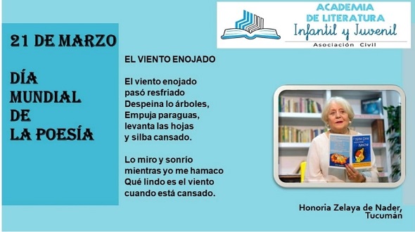 Letras de Fuego / Colaboración. La escritora tucumana y especialista en literatura infanto-juvenil, Honoria Zelaya de Nader, celebra el Día Mundial de la Poesía, con una de sus producciones destinada a esos “locos bajitos”, como los llama Serrat.
