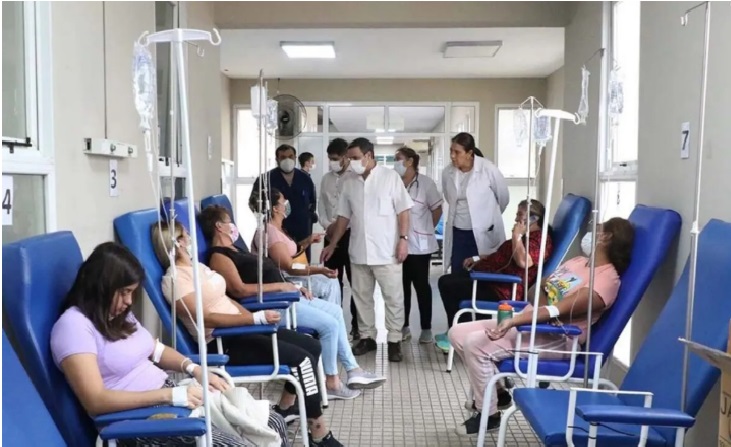 La doctora María José Alascio habló sobre la situación epidemiológica de dengue en Tucumán y dijo: “Veníamos con un aumento en las consultas de estas últimas semanas, nuestro promedio de consultas por guardia es de 200 pacientes, todo este fin de semana se mantuvo en un total de 350, está por arriba de la media pero no tan alto como en algunas otras semanas, y la consulta particularmente con dengue, ha sido de ese total entre un 25 y 40%, entre 80 y 120 pacientes por día en consulta por la guardia. La mayoría pacientes con síntomas leves, que han necesitado hidratación y un 20% de esa total ha necesitado internación”.