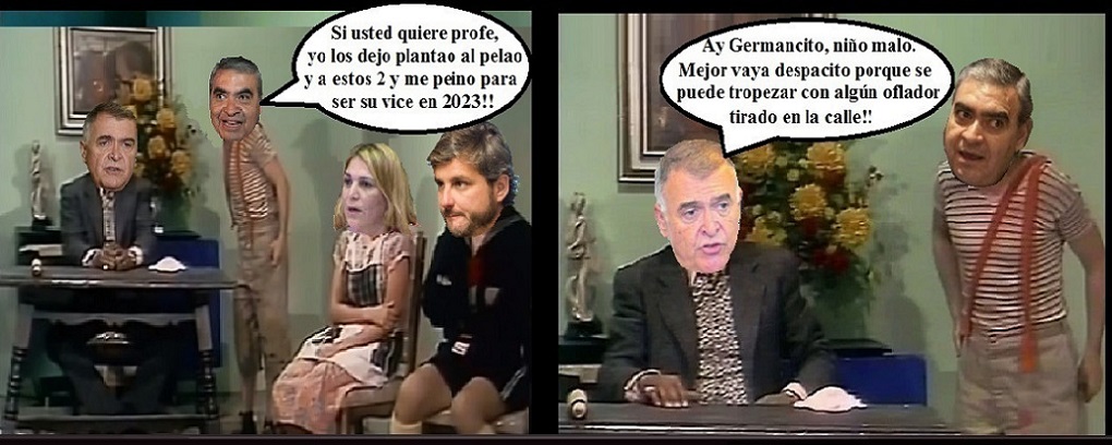 En esta oportunidad, la historia gira en torno a versiones lanzadas por funcionarios manzuristas sobre candidatos que se intentan imponer con miras a las elecciones 2023. Germán niega acercamientos al PJ, porque se siente cómodo al lado del “Pelado” Larreta. En tanto, la niña Caro y la Burra, siguiendo órdenes hacen de las suyas para que pise el “palito” (o el oflador) Osvaldo.