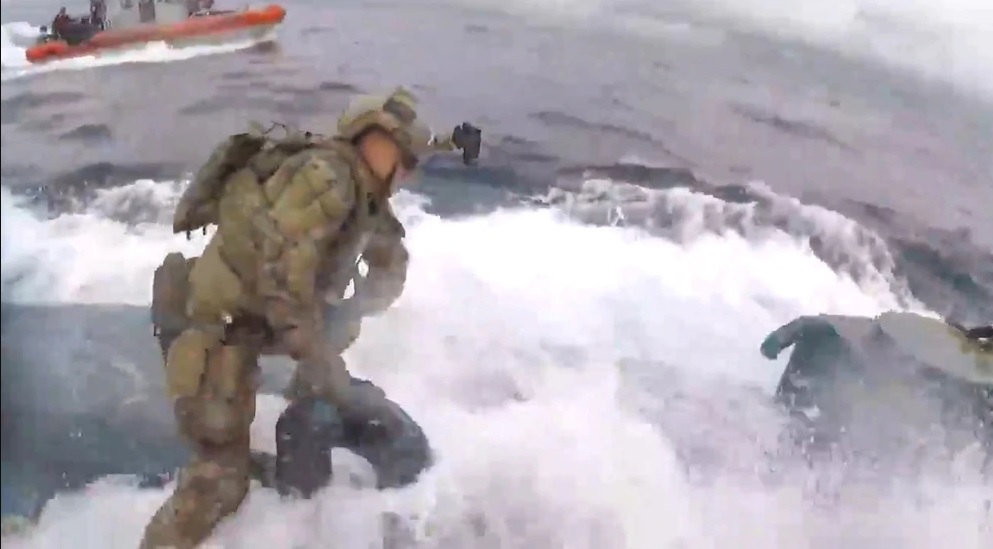 El jefe de la operación, a bordo de la embarcación de la Guardia Costera, es quién en el video indicó a los narcotraficantes que detuvieran la marcha, justo antes de que el resto del equipo salte hacia el vehículo.