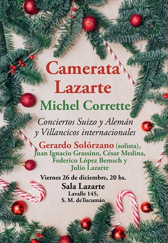 Letras de Fuego / Noticias. Se tocarán esos conciertos y villancicos internacionales de Michel Corrette, con Gerardo Solórzano como solista, acompañado por Juan Ignacio Grassino, César Medina, Federico López Bemsch y el Maestro Julio Lazarte.