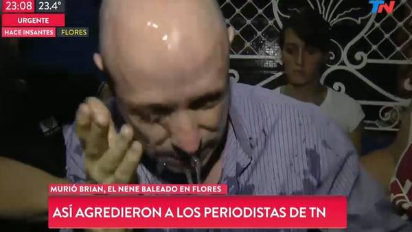 Javier Fabracci, notero del canal Todo Noticias (TN), fue agredido esta noche en medio de la cobertura por los incidentes en la Comisaría de Flores, tras el crimen de Brian. El periodista, a quien le abrieron un matafuegos en la cara, denunció que el hecho fue cometido por barrabravas y no por los vecinos que protestaban en el lugar.