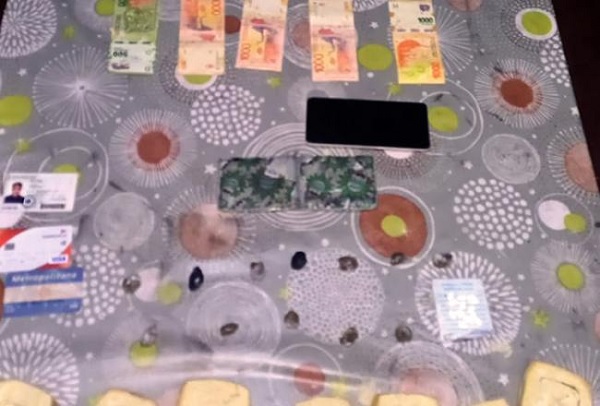 Para sorpresa de los efectivos de la Unidad Especializada, se constató la existencia de 12 bagullos de marihuana, 14 pastillas blancas del tipo ansiolíticos (sin leyenda ni envoltorio a la vista), la suma de ocho mil ochocientos noventa pesos, y un teléfono celular.