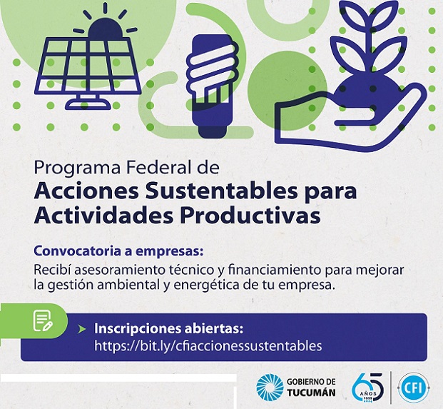 El Consejo Federal de Inversiones puso en marcha el Programa de Acciones Sustentables para Actividades Productivas, que en Tucumán cuenta con el apoyo del Gobierno de la Provincia a través de la Unidad Ejecutora Provincial (UEP). Están abiertas las inscripciones para las capacitaciones destinadas a empresas y profesionales.