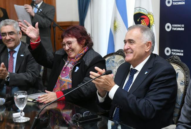 “En medio de las adversidades económicas que enfrenta nuestro país, resulta gratificante escuchar testimonios que contagian alegría y esperanza. Hoy, más allá de los números, estamos disfrutando de un valioso reencuentro de la gran familia trabajadora de la provincia de Tucumán, la familia que cumple con diversas obligaciones dentro del Estado público”, comenzó diciendo el Primer Mandatario tras firmar el acuerdo con los gremios estatales.