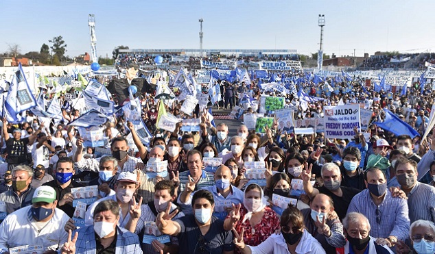 Osvaldo Jaldo, Juan Antonio Ruiz Olivares, Gladys Medina, Graciela Gutiérrez, Patricia Lizarraga, Maia Martínez, Nancy Bulacio precandidatos de Todos por Tucumán, realizaron el mayor acto de cierre de campaña en la provincia. Los acompañaron Darío Monteros y Aldo Salomón, intendentes de Banda del Río Salí y Alderetes, junto a los concejales de esos municipios, de los que participaron Regino Amado, Gonzalo Monteros, Daniel Herrera, Tulio Caponio, Javier Morof, Roberto Palina, Dante Loza, Daniel Deiana, concejales de Simoca, Graneros, Bella Vista; dirigentes de toda la Sección electoral Este, Madres de Plaza de Mayo, César Torrea secretario del sindicato de Camioneros, Alejandro Casares secretario adjunto de SUTERH, Daniel Bustos presidente de Atlético Concepción, referentes gremiales y sindicales, dirigentes de toda la capital y de toda la provincia.