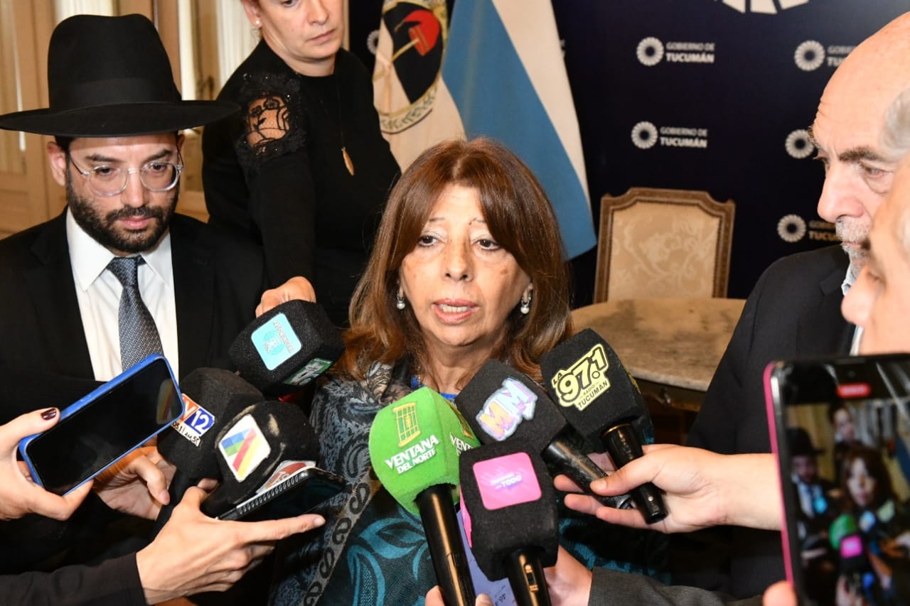 Por otro lado, dijo: “como parte de esta patria, de esta ciudadanía tan fuerte y tan pujante, estamos totalmente agradecidos. Así que es un año por un lado de memoria por el atentado y por otro lado de festejo. Y estando acá en este día tan especial y conmovedor del Día del Holocausto es para nosotros muy fuerte, recibimos el apoyo y el acompañamiento de parte del gobernador. Estamos agradecidos también por el acompañamiento del gobernador hacia la comunidad judía en Tucumán que es una de las más importantes del país”.