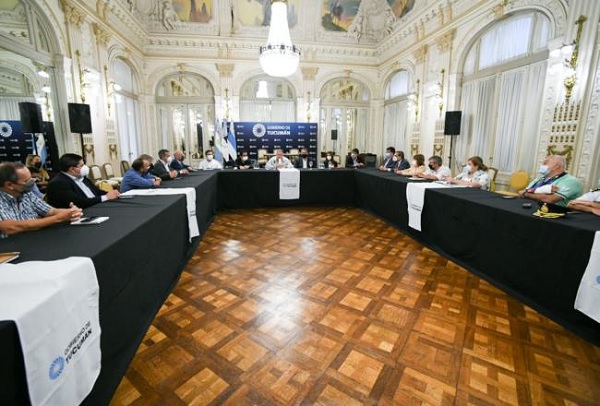 Participaron la secretaria y subsecretario general de la Gobernación, Silvia Pérez y Pedro Sandilli; los ministros Luis Medina Ruiz (Salud); Carolina Vargas Aignasse (Gobierno y Justicia); Eugenio Agüero Gamboa (Seguridad); Juan Pablo Lichtmajer (Educación); Miguel Acevedo (Interior); Álvaro Simón Padrós (Desarrollo Productivo).
