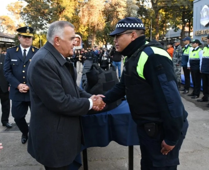 En el desarrollo de su agenda de trabajo de este martes, el gobernador de la provincia, Osvaldo Jaldo, participó de un acto de entrega de chalecos antibalas a la Policía.